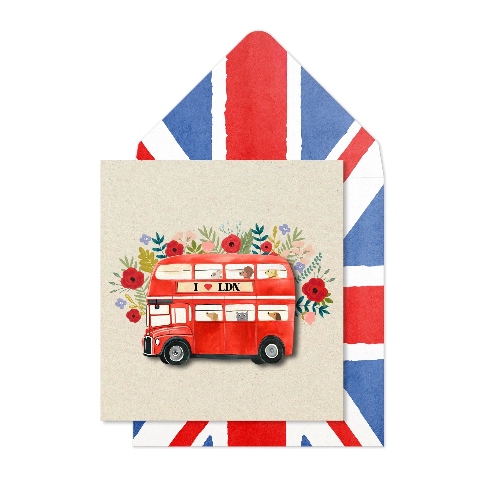 Send a message with a touch of iconic British charm. This London Bus Floral Card features the beloved red double-decker bus framed by a vibrant floral design. Perfect for birthdays, thank you notes, or just to say hello, it’s a cheerful way to share a little piece of London.
