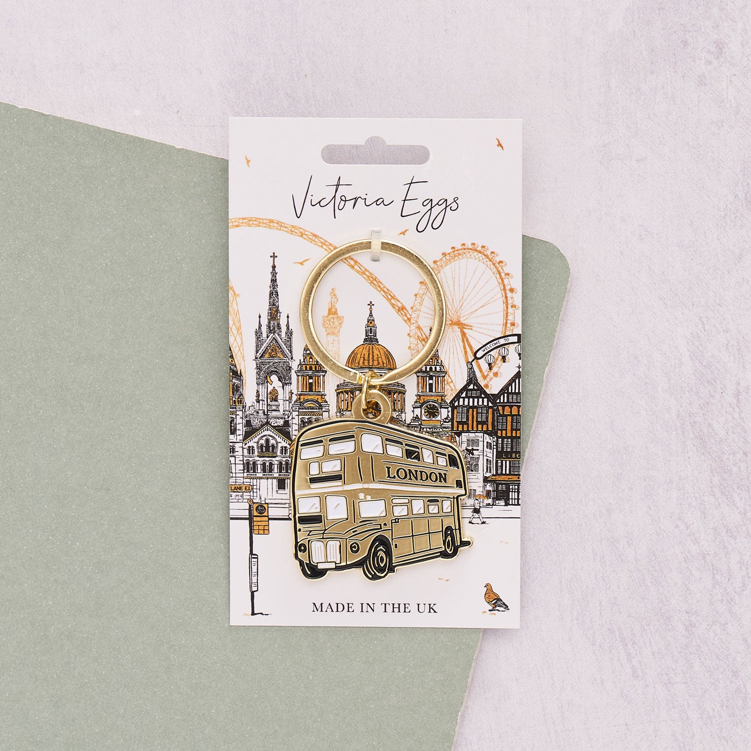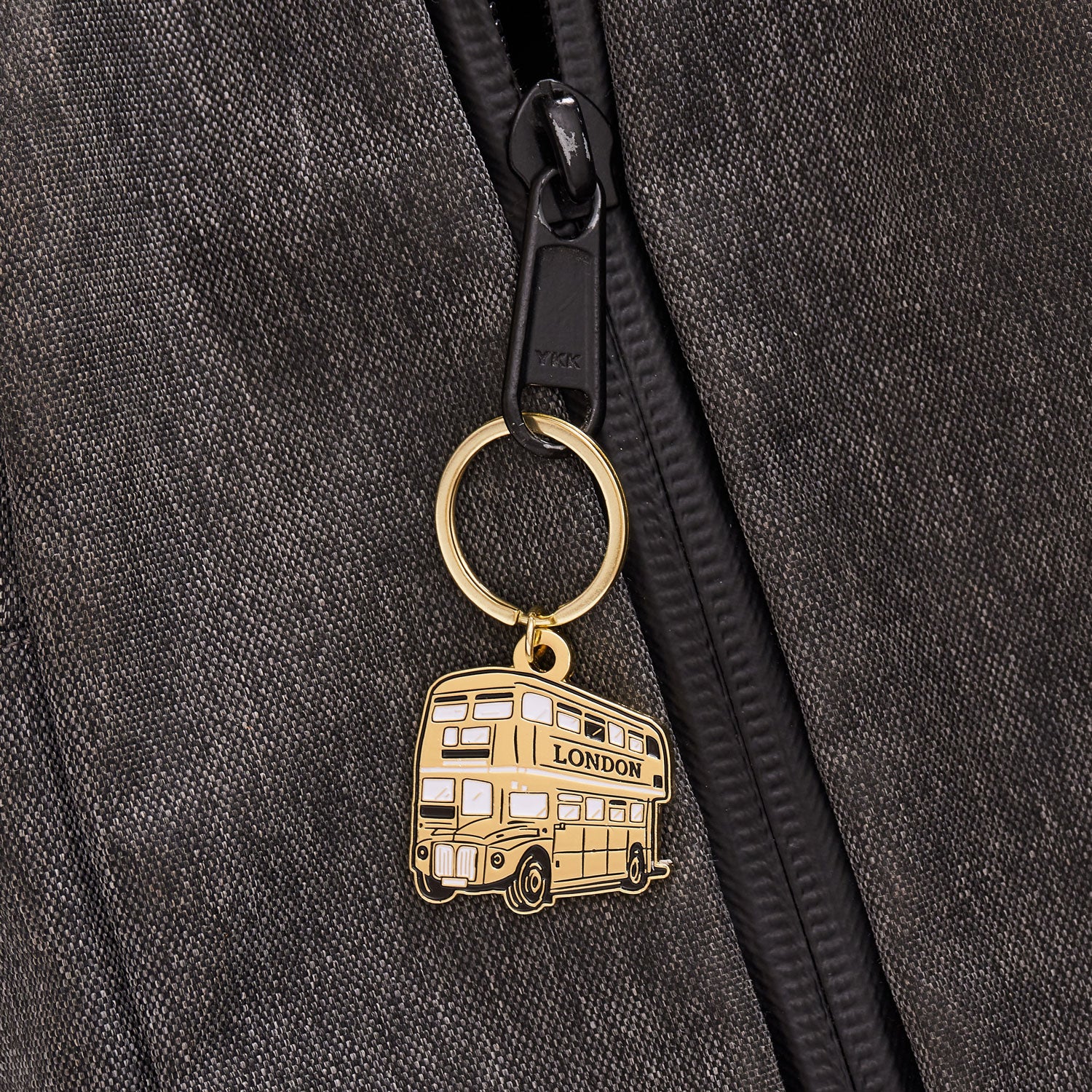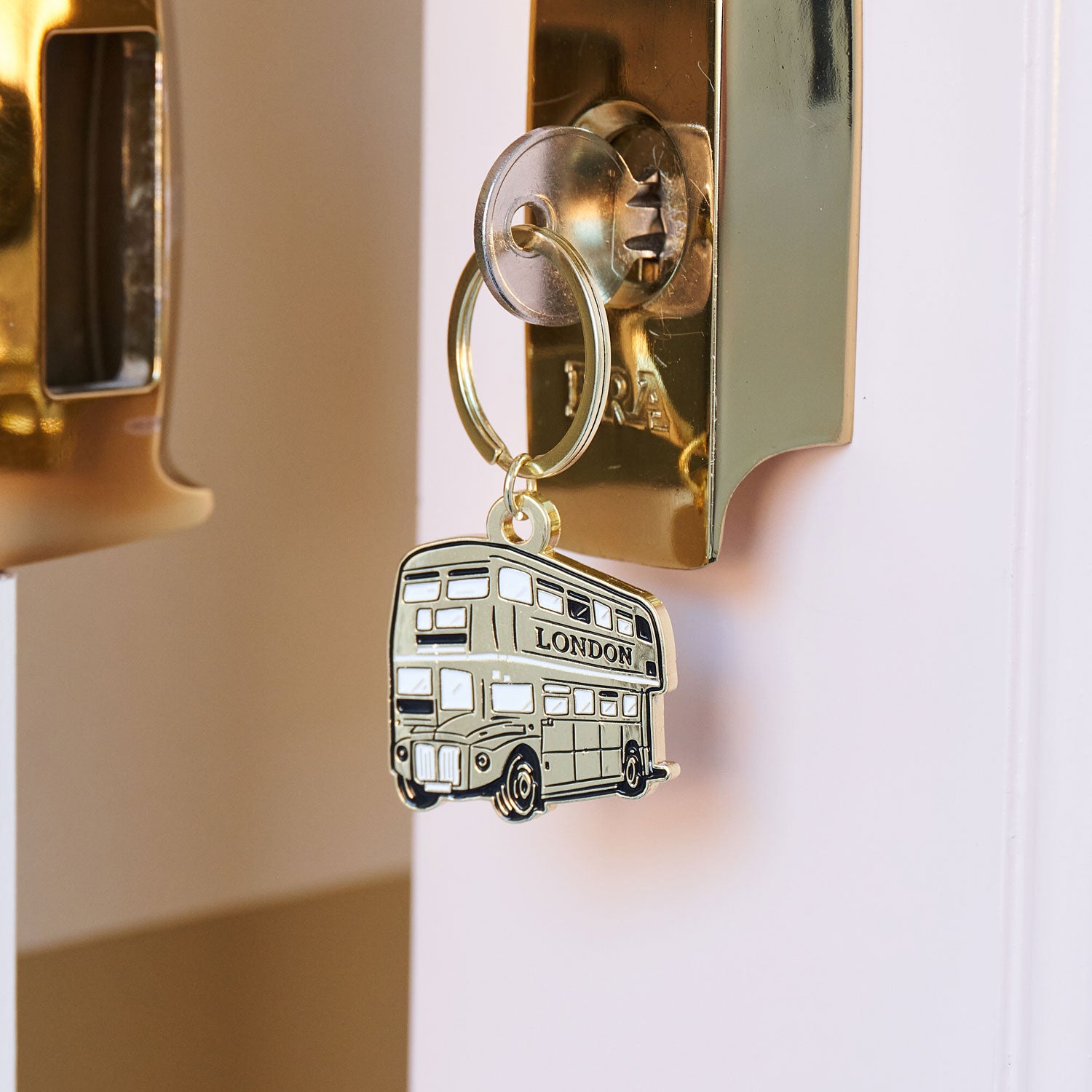 Elevate your keychain with this elegant London bus keyring. Meticulously crafted and hand-painted in the UK, this die struck keyring pays homage to the iconic Route-master bus. Perfect as a small gesture or charming addition to your collection. Made with care in the UK.