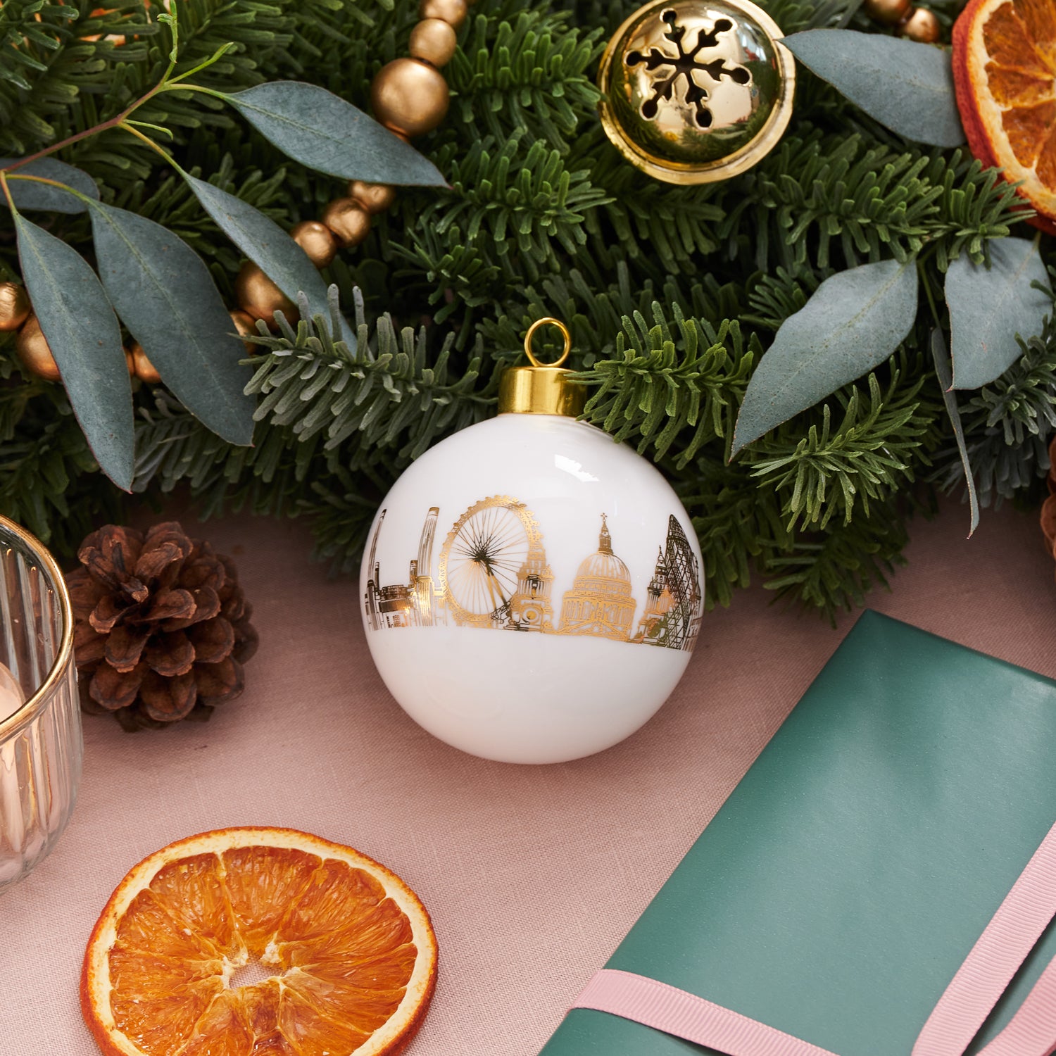 This exquisitely designed bauble showcases detailed depictions of London's most famous landmarks, such as St Paul's Cathedral, Tower Bridge, and the London Eye. Its charming yet timeless appearance celebrates the city's beauty in every aspect, making it a perfect decoration for your home now and in the future.