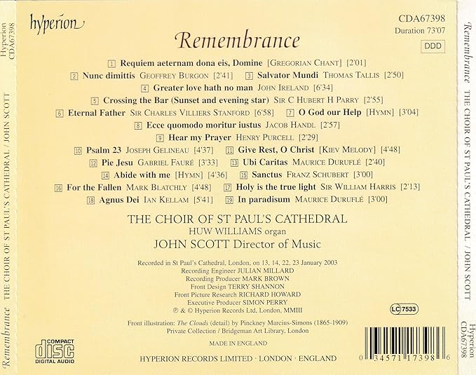 "Remembrance at St Paul’s" is a poignant collection of sacred choral music, capturing the reflective and solemn spirit of remembrance. Performed by the esteemed St Paul’s Cathedral Choir, this album includes a selection of powerful works, ranging from Gregorian chant to works by celebrated composers such as John Ireland and Gabriel Fauré. The music evokes a deep sense of reverence and peace, ideal for moments of reflection or commemoration.