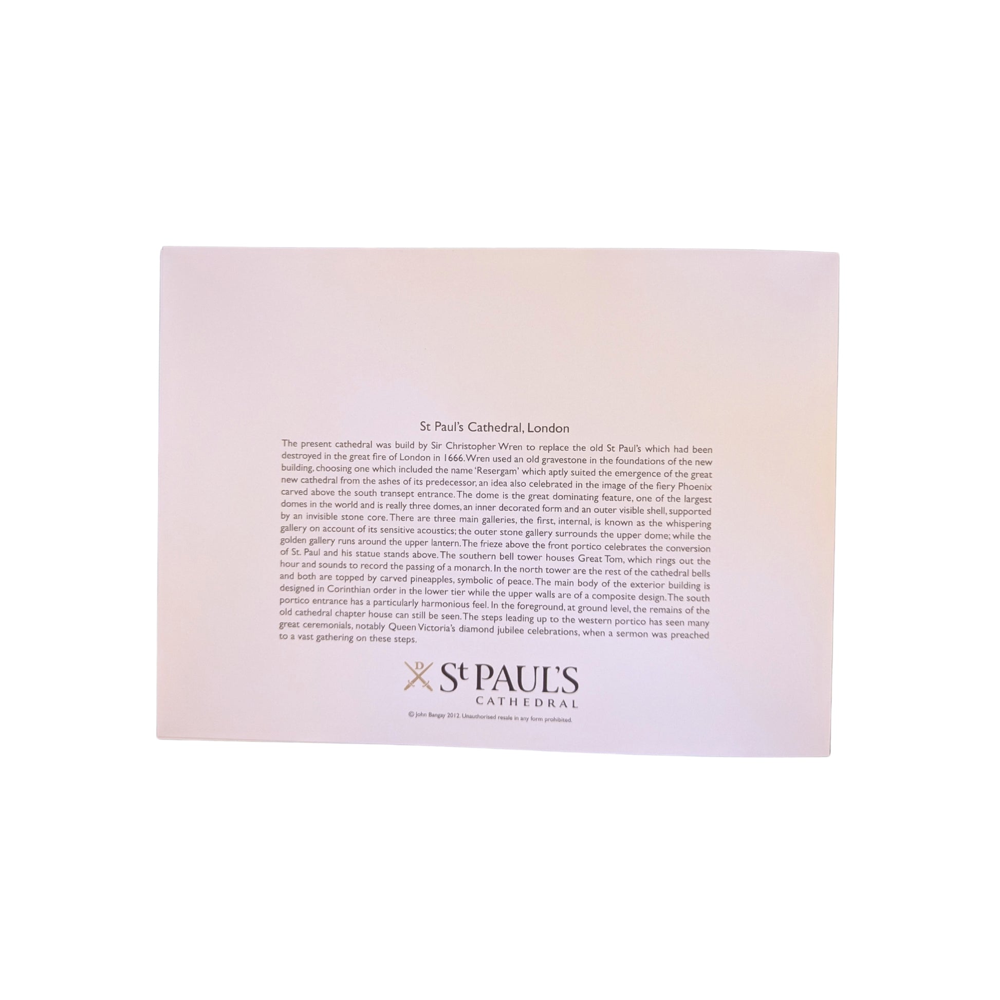 Printed on high-quality card and supplied with an envelope, this design features a finely rendered line illustration of St Paul’s Cathedral. The reverse includes a full historical description of the Cathedral, making this card not only a thoughtful gesture but also a keepsake for anyone who loves London’s architectural heritage.
