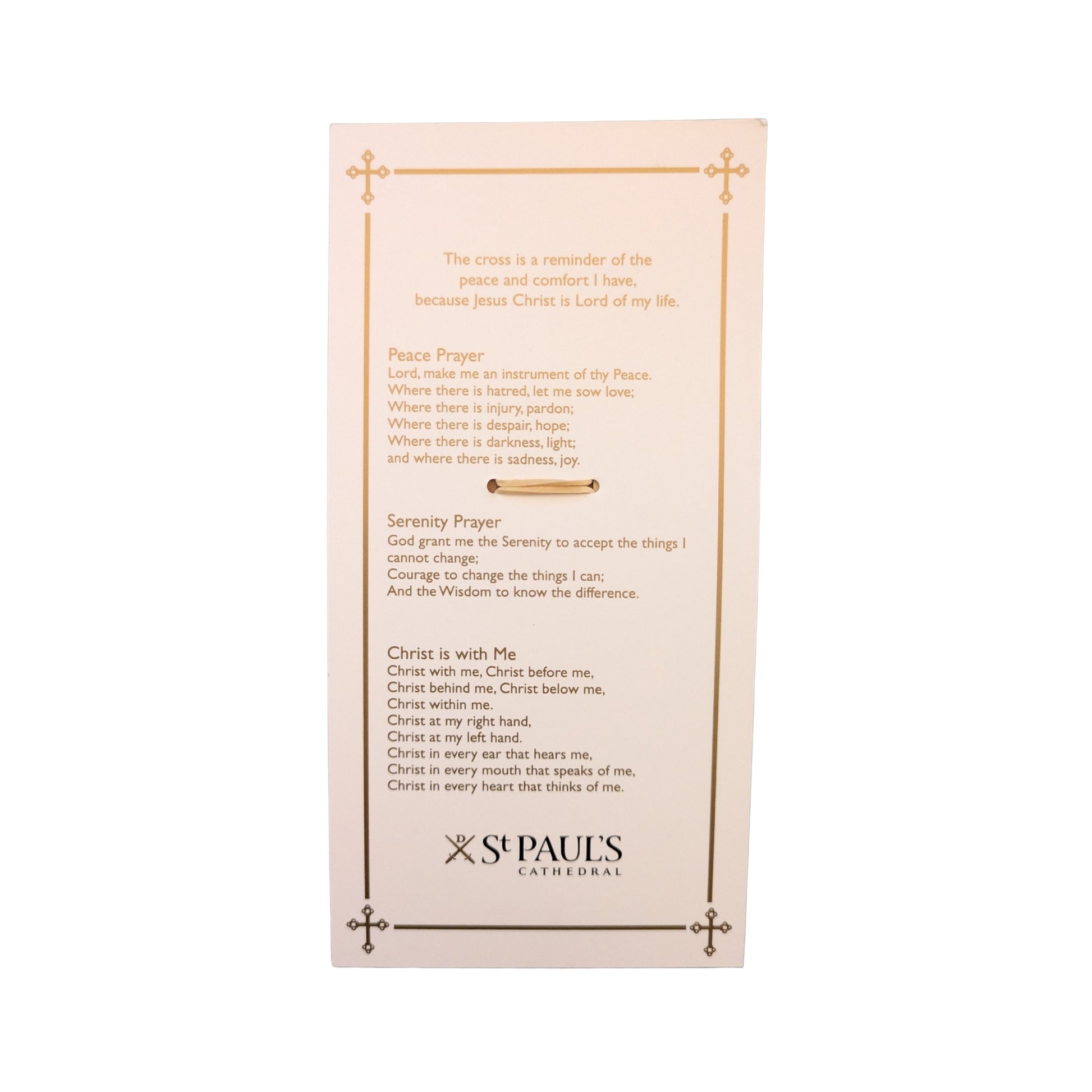 Crafted from genuine Holy Land olive wood, this St Paul’s Cathedral Holding Cross is designed to sit naturally in the palm of the hand, offering comfort, focus and peace during moments of prayer or reflection. Each cross is individually carved, allowing the unique grain and warmth of the olive wood to shine through.