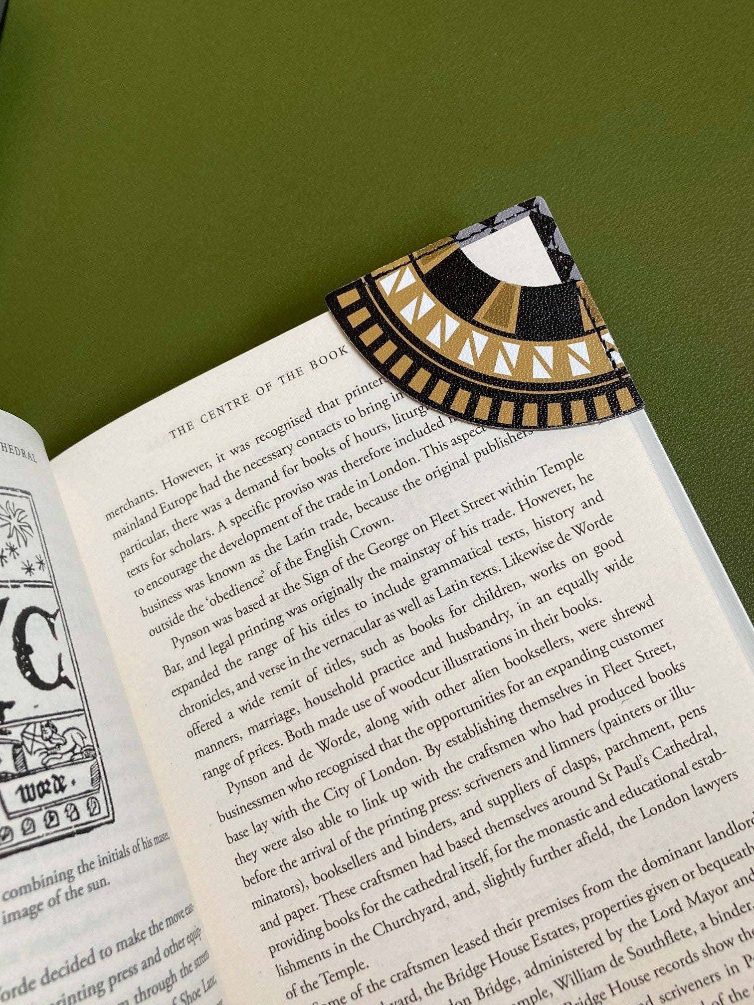 A beautifully crafted leather corner bookmark featuring a design inspired by the intricate floor of St Paul’s Cathedral. Made from premium leather, this elegant and practical bookmark slips neatly over the corner of your page. A thoughtful gift or personal keepsake for book lovers, history enthusiasts, or visitors to the cathedral.